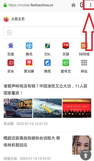 1、安装并打开火狐浏览器手机版,在点击右上角的三点。