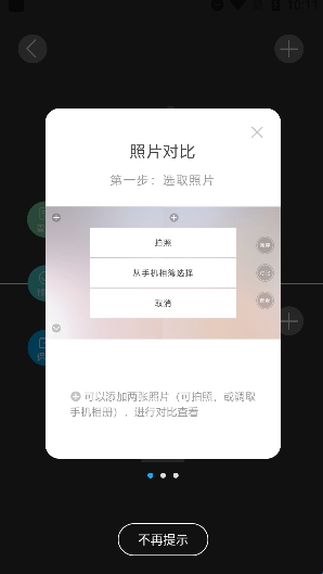 对比拍照模式,首次拍照时可以参照下半屏的模特示意图片进行拍摄;同角度的第二次拍摄时,下半屏显示为首次拍摄存储的照片。