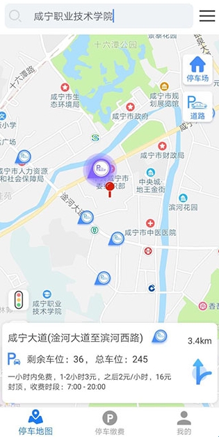 1、咸宁停车app实时提供周边空车位信息;